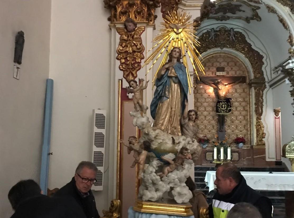 Hui s'ha celebrat el trasllat de la Puríssima del Poble des de la basílica de sant Pasqual, on es custodia habitualment, fins a la capella del Crist de l'Hospital. El regidor de Tradicions, Santi Cortells, ha supervisat el trasllat de la imatge, que romandrà a aquest espai fins el dia gran -el proper divendres 8-, quan tindran lloc els actes oficials de la festa de la Puríssima, amb el trasllat a l'església Arxiprestal, on se celebrarà la missa i processó claustral, que donarà pas al retorn de la patrona al Museu del Pouet de sant Pasqual.