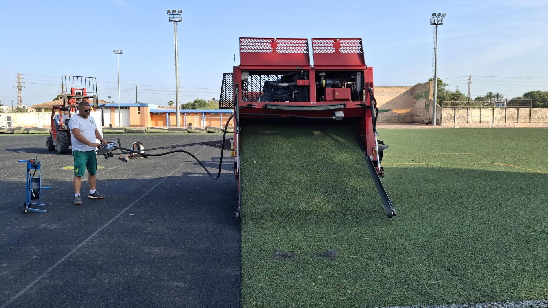 L’Ajuntament de Vila-real, mitjançant l’empresa adjudicatària Realturf Systems S.L., està duent a terme la millora del camp de futbol 'Fundació Flors', que inclou la substitució de la gespa artificial per un import de 121.951,20 euros.