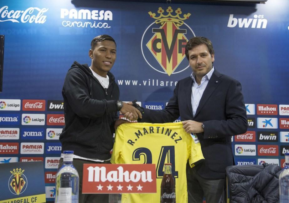 El nou davanter colombià del Villarreal, Roger Martínez, s'ha mostrat “molt feliç” en la seua presentació com a jugador del Submarí. L'acte s'ha celebrat aquest migdia en la sala de premsa de la Ciutat Esportiva i ha estat encapçalat pel conseller delegat del club, Fernando Roig Negueroles.