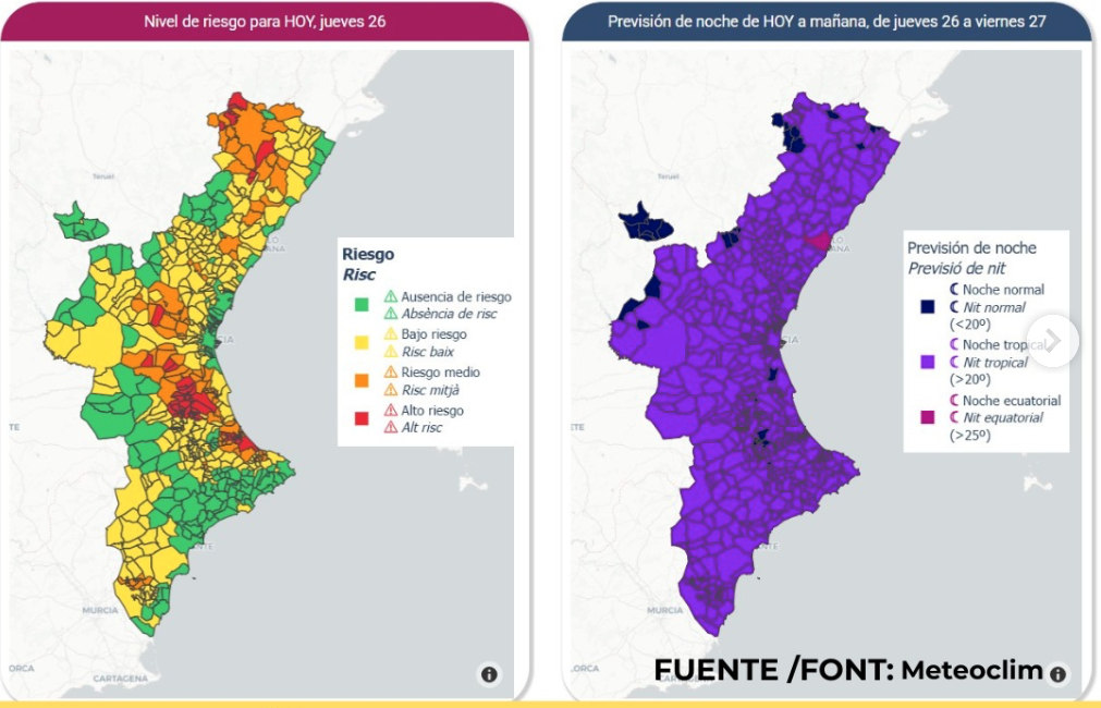 Segons la previsió facilitada per Meteoclim, també es registraran nits càlides, amb temperatures mínimes elevades, la qual cosa pot dificultar el descans i agreujar els efectes de la calor acumulada durant el dia.