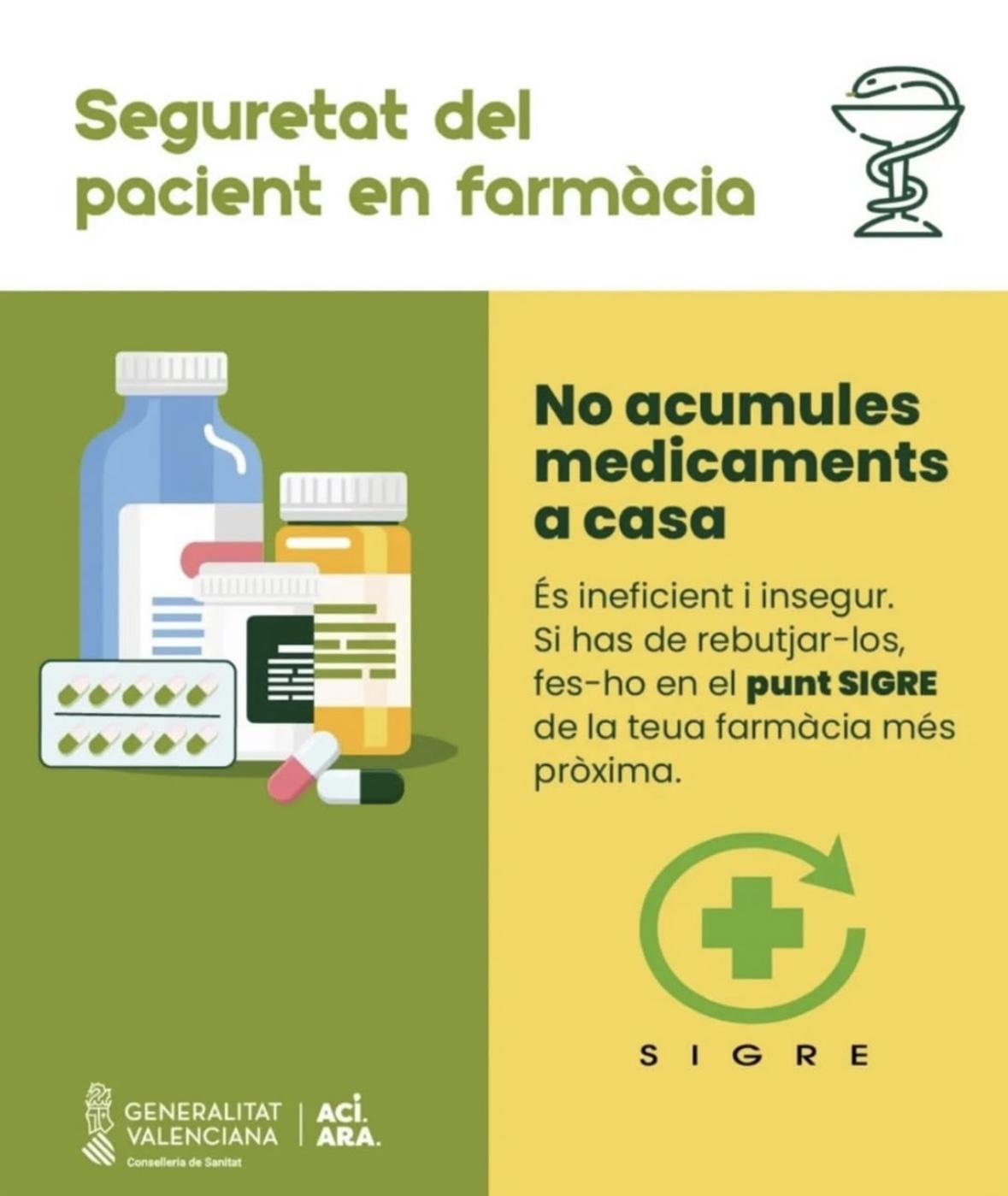 L’objectiu és fomentar que la població faça un ús responsable dels fàrmacs i, en cas de tindre’ls caducats o no necessaris, els depositen als punts SIGRE disponibles en qualsevol farmàcia. Aquests contenidors especials garanteixen la recollida i el tractament adequat dels residus sanitaris, evitant riscos per a la salut i també per al medi ambient.