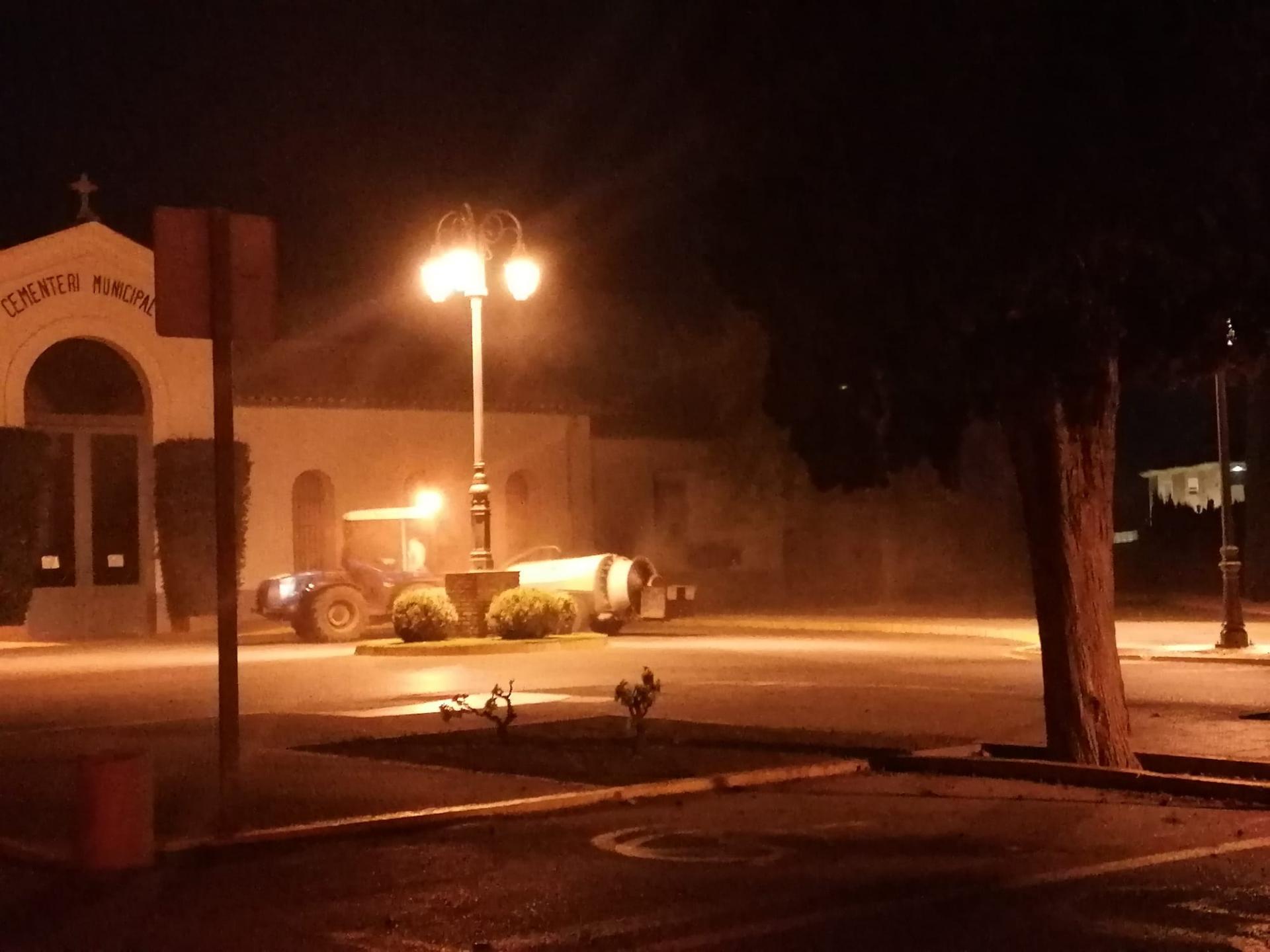 Els voluntaris han treballat en tres torns perfil·lats per l’UME i Protecció Civil i han recorregut avingudes principals i zones perifèriques com el Pou d’Amoròs, o l’entrada del cementeri. Chalmeta demana a la ciutadania que tanque les finestres i les portes al pas dels turbos per si pateixen alguna irritació i reitera el seu agraïment a Stoplagas, Cubas Setel S.L. i Protecció Civil i llauradors