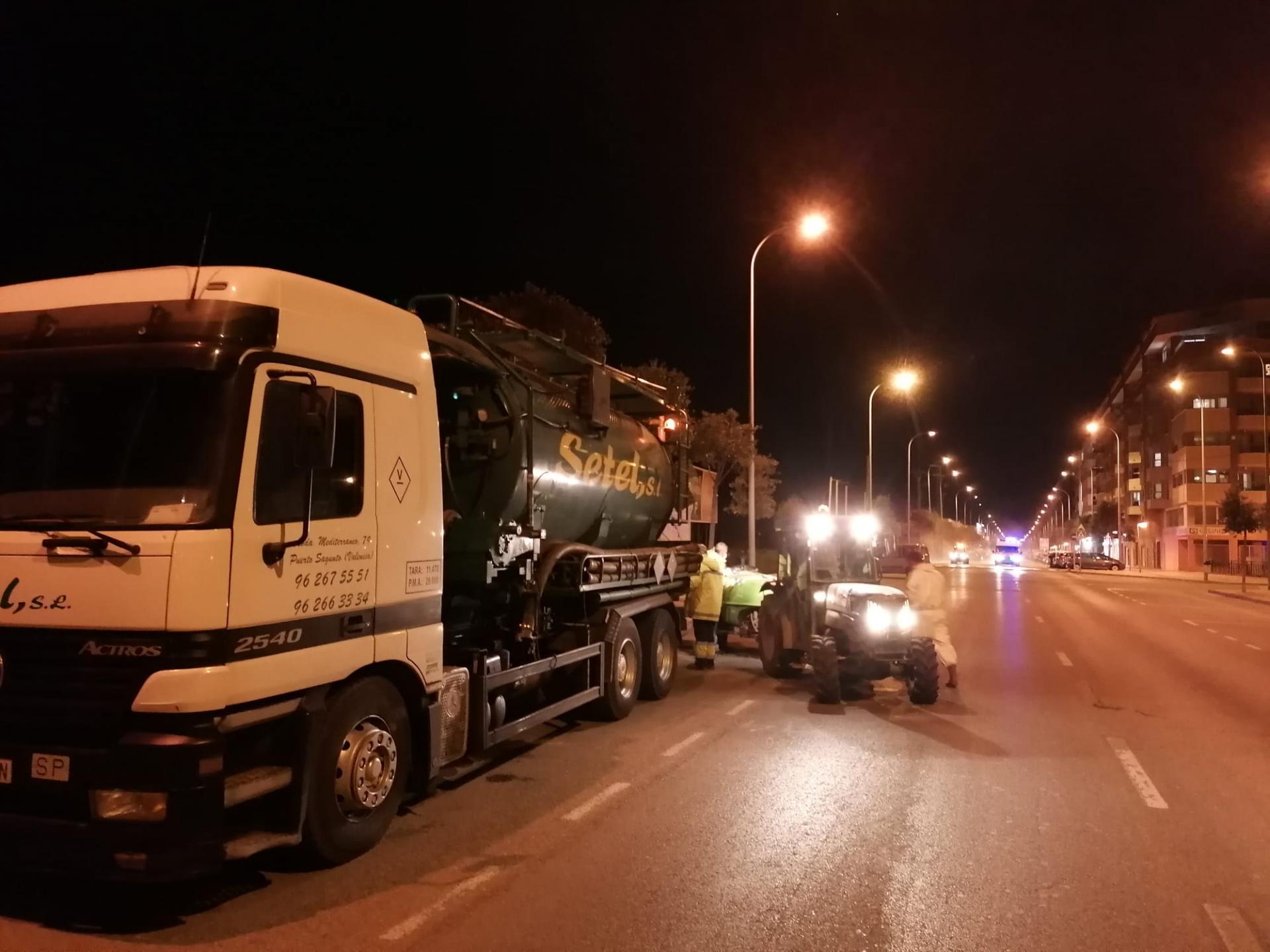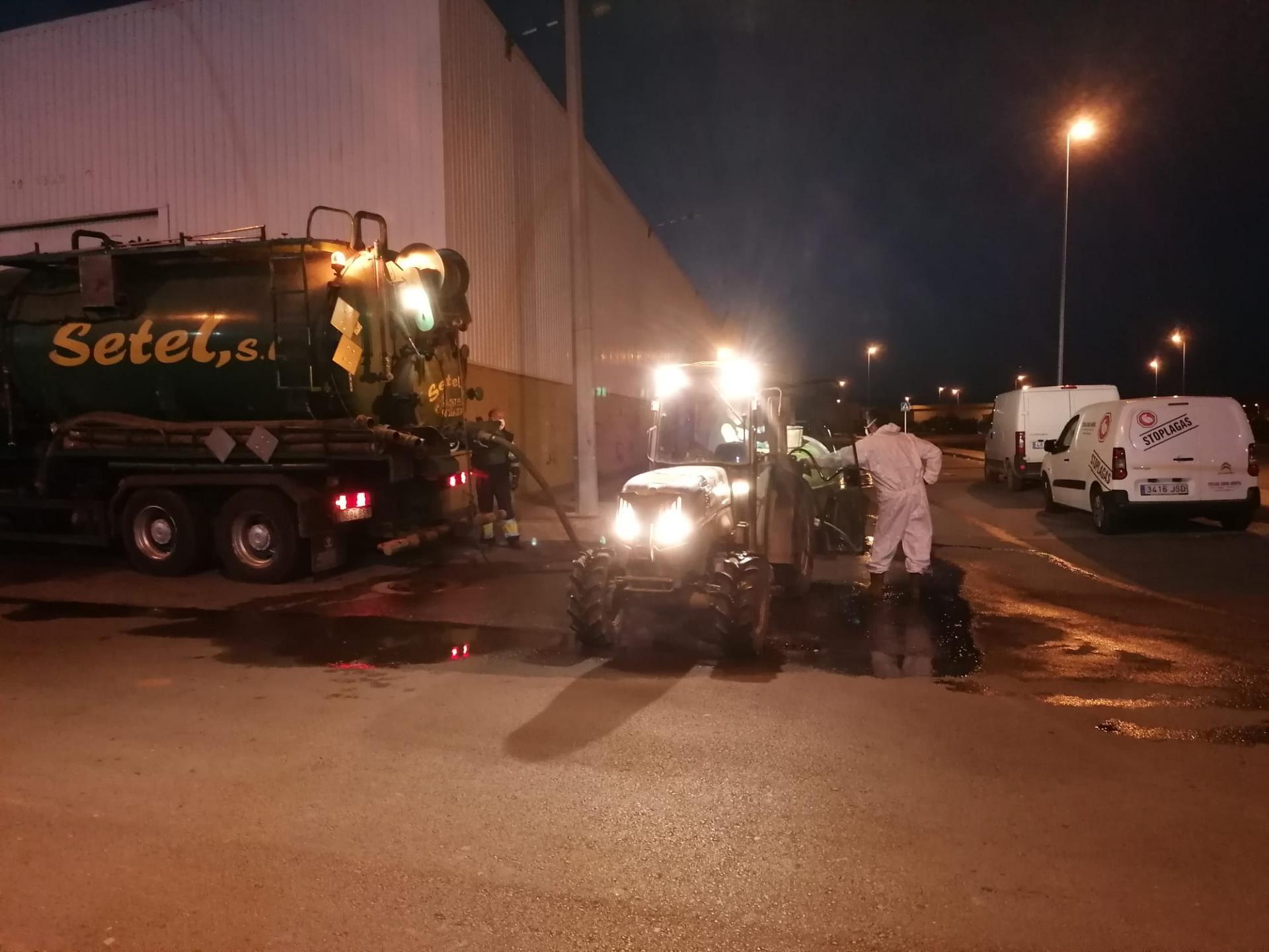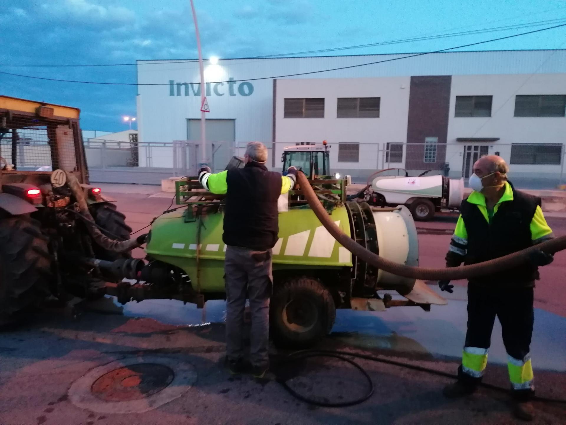 L’edil ha explicat que durant el cap de setmana s’ha utilitzat una solució d’hipoclorit diluït proporcionat per l’empresa adjudicatària que s’ha carregat en els turbos dels llauradors que s’han oferit, sis aquest cap de setmana en tres torns de treball. A més, s’ha contractat una empresa de cuba que els ha acompanyat en el recorregut per a omplir els turbos a mesura que es buidaven.