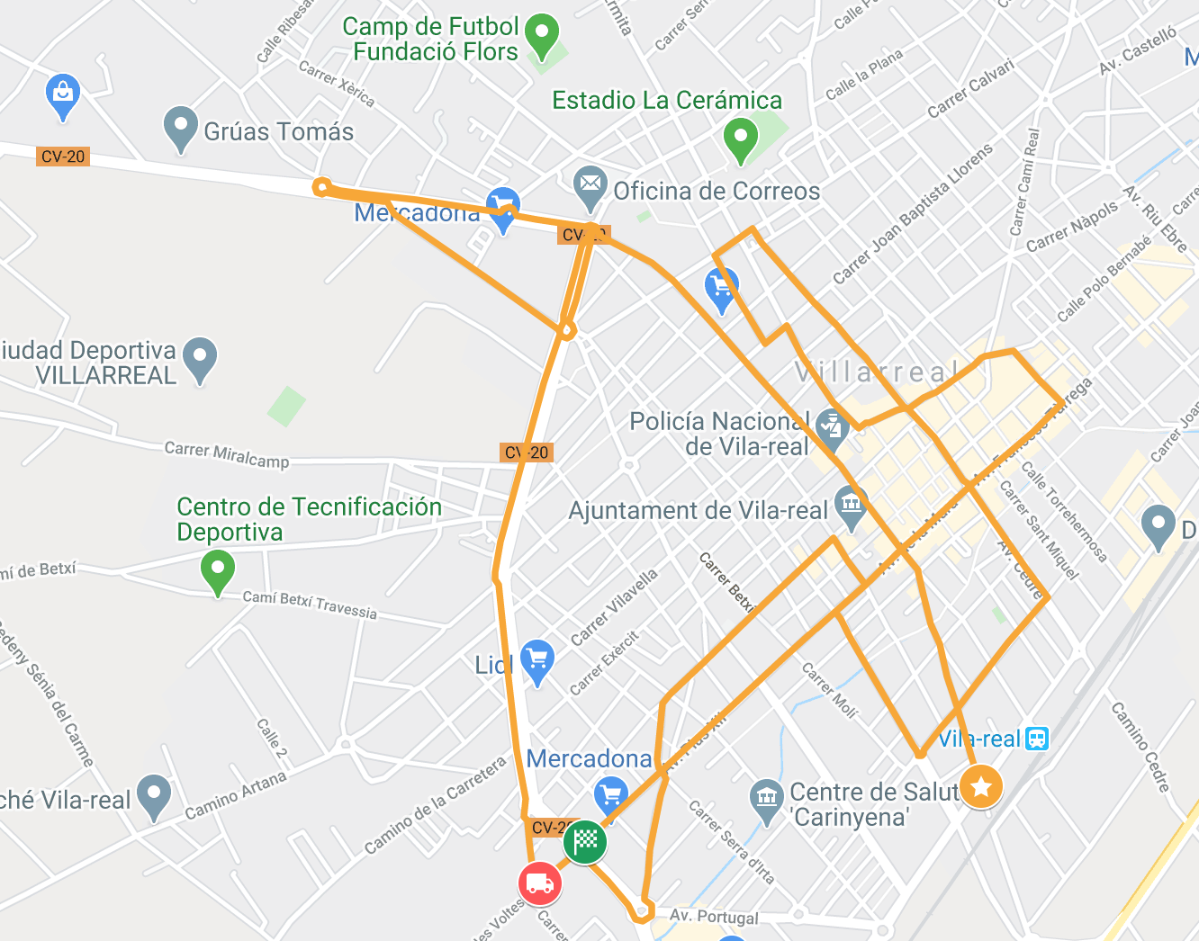 El regidor d’Agricultura, Sostenibilitat i Medi Ambient, José Ramón Ventura Chalmeta, ha explicat a aquest diari que com el cap de setmana passat, s’han netejat més carrers dels previstos i és que el dissabte estaven fixats en la ruta principal once km i finalment es van fer 16. Com es veu en el mapa, el dissabte l’itinerari contemplava vials com l’avinguda Alemanya, la zona de Correus, carretera d’Onda, carrer Lluis Maria Llop, l’avinguda del Cedre, els voltants de sant Pasqual, avinguda Europa, que va ser el punt d’inici, el d’emplenat que va ser en el Camí Els Voltes i el final, l’avinguda Pius XII.