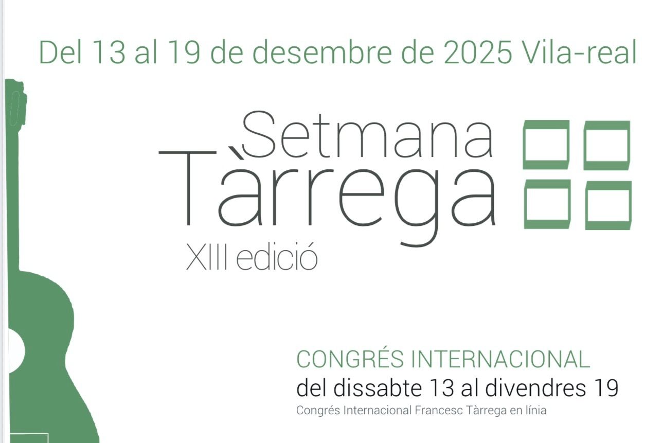 Vila-real Informació La XIII Setmana Tàrrega, organitzada per l'Institut per al Desenvolupament Musical i amb el patrocini de l'Ajuntament de Vila-real, inicia este cap de setmana el seu programa amb la sessió inaugural del VI Congrés Internacional Francisco Tàrrega, que tindrà lloc este dissabte 13 de desembre, a Vila-real, durant tota la vesprada.
