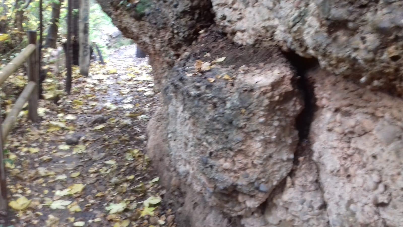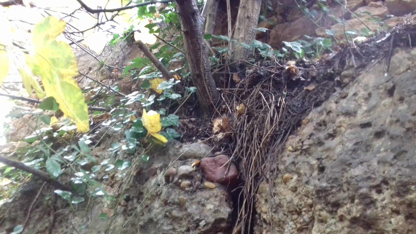 Després d’una inspecció ocular s’ha detectat que les arrels d’una olivera de grans dimensions ocasionen el trencament de la roca