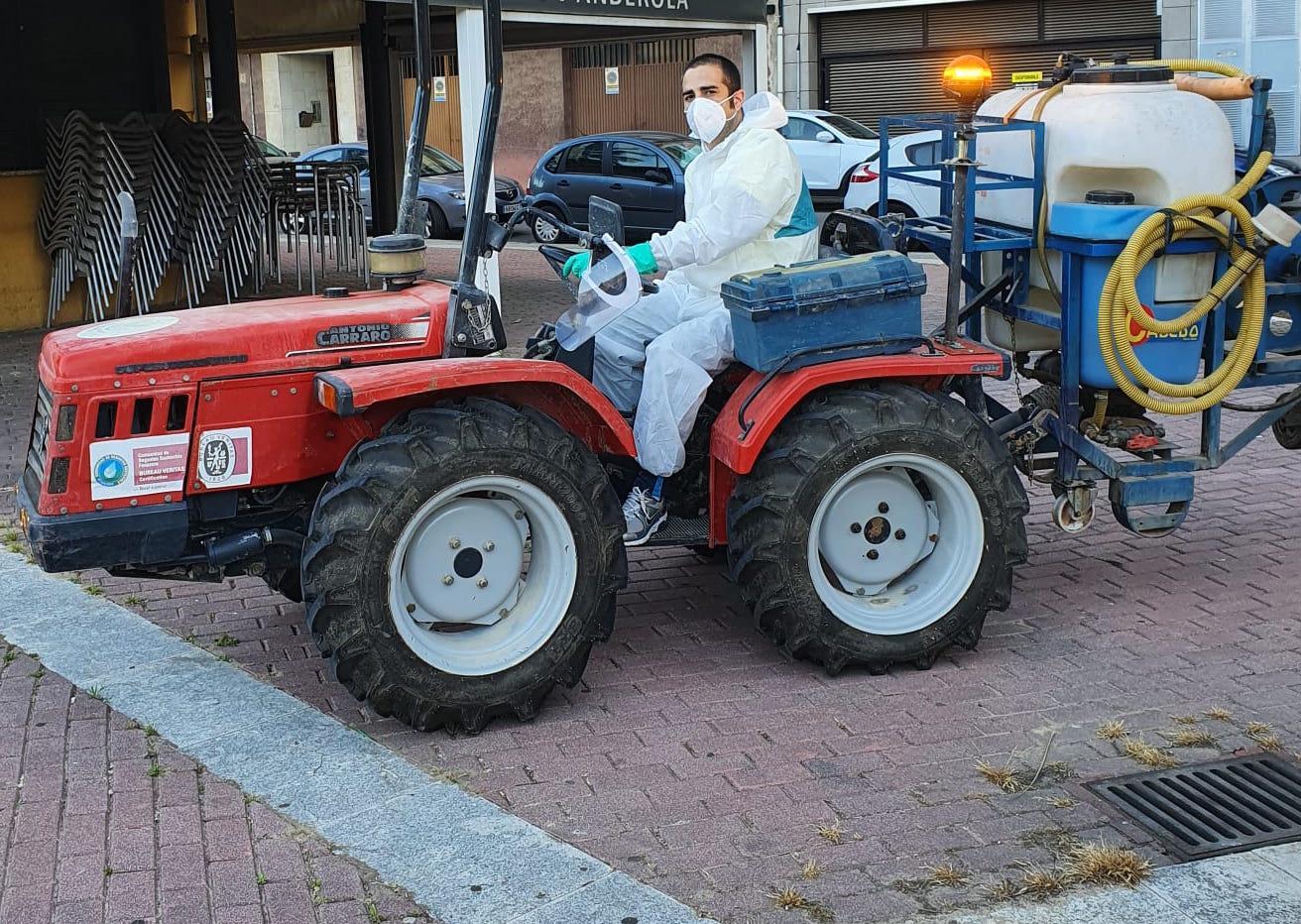 És habitual veure als tractors emetent productes desinfectants per la localitat durant la nit, quan els veïns ja estan recollits a les seves cases.