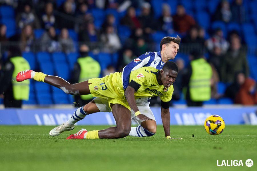 En el 21, el Villarreal va tindre la primera amb una gran passada en profunditat de Pape Gueye per a Barry, qui va enganxar la pilota quasi al vol per connectar un potent tir que va marxar desviat per poc. Dos minuts després, va arribar la rèplica de la Real des de la frontal amb un bon tir de Sucic, que també va acabar marxant-se per la línia de fons.