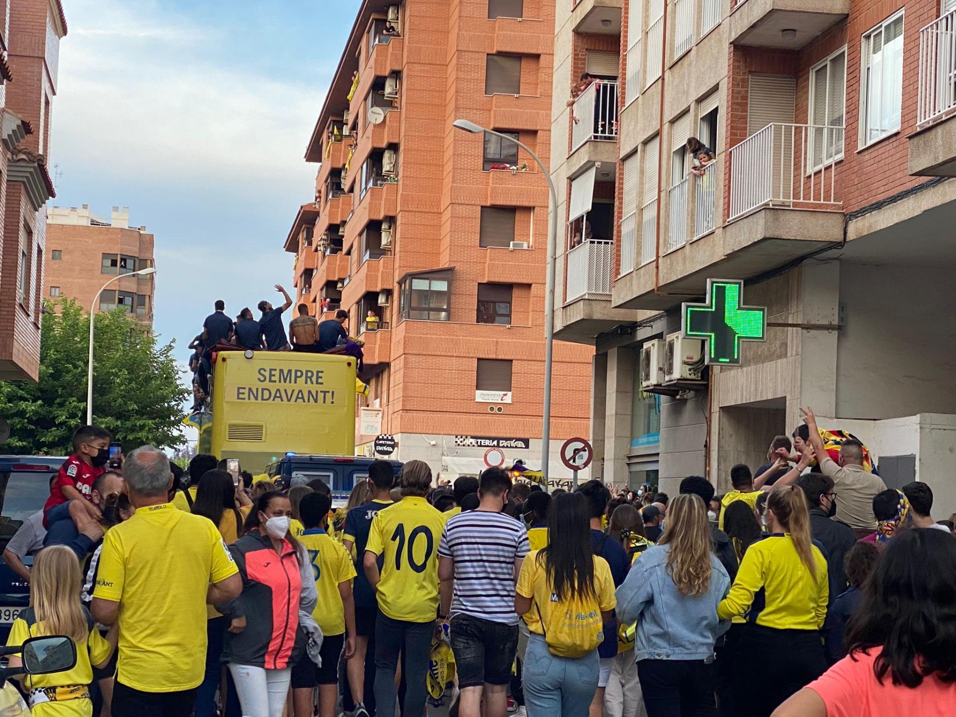 Després de més d’una hora de recorregut, l’autobús va poder arribar fins a l’Estadi de la Ceràmica on esperaven els dirigents del club i els familiars dels futbolistes, cos tècnic i directiu per al sopar d’honor, amb la qual també es va posar punt i final a una extraordinària temporada, culminada amb el títol d’Europa League.