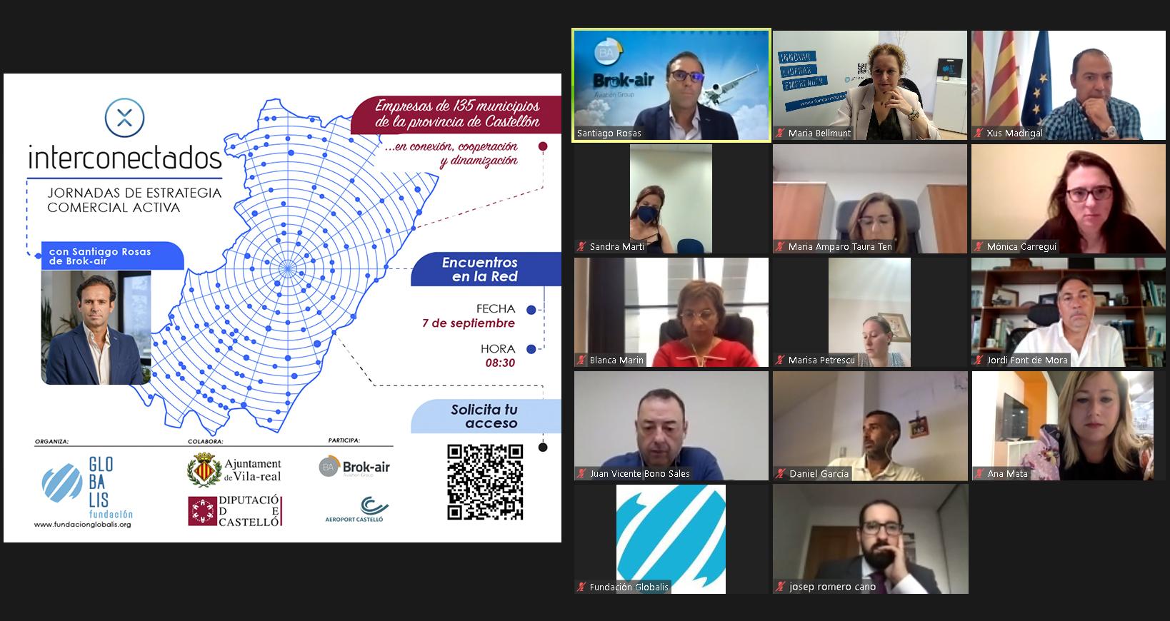 La segona jornada d' Interconectados, organitzada per la Fundació Globalis en col·laboració amb l'Ajuntament de Vila-real i la Diputació de Castelló, ha comptat amb una vintena d'empreses i emprenedors de la província que han compartit les seues experiències i han pogut fer Networking amb la resta dels assistents. Al llarg d'aquesta sessió, també ha participat Santiago Roses, CEO i Cofundador de Brok-air, l'empresa aeronàutica situada en l'Aeroport de Castelló que ha explicat el seu model de negoci de serveis aeronàutics en l'àrea del manteniment, l'enginyeria i *handling per a aviació comercial i executiva. Els assistents a aquesta sessió empresarial també s'han format “L'experiència de client com a clau per a impulsar a la teua empresa” impartida per l'empresa vila-realenca Pinchaaqui.es.