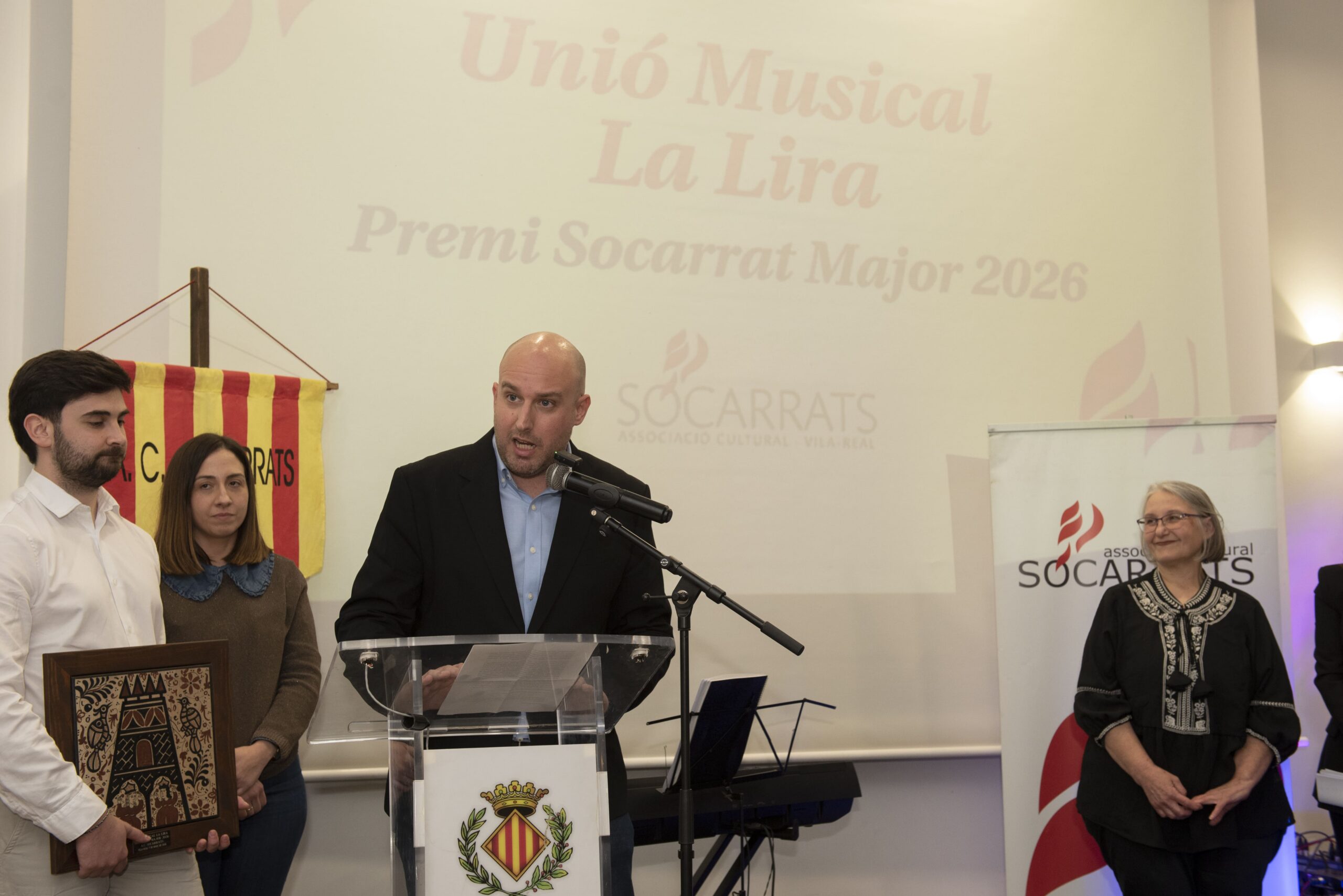 Unió Musical La Lira de Vila-real el Socarrat Major 2026, un guardó que reconeix la trajectòria i la contribució d'aquesta entitat a la cultura valenciana i l'ús del valencià com a llengua vehicular.