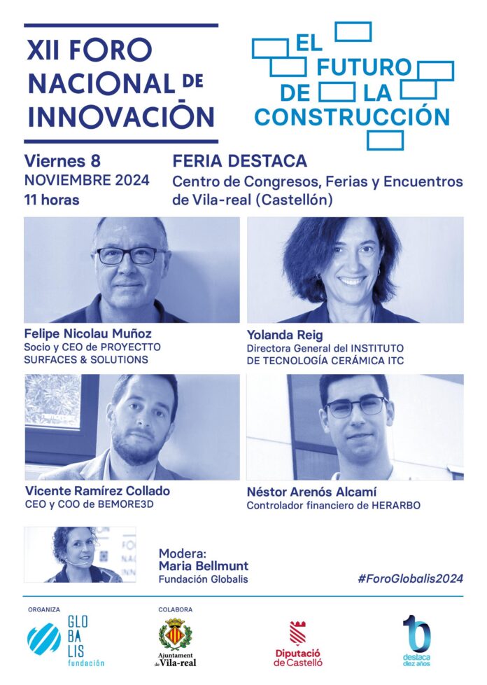 Entre els ponents es troben: Néstor Arenós Alcamí, controlador financer en Herarbo, empresa de Vila-real dedicada als prefabricats de formigó i taller de ferralla; Vicente Ramírez Collado, CEO i COO de Bemore3D, empresa valenciana especialitzada en construccions mitjançant impressió 3D; Felipe Nicolau, CEO de Proyectto Surfaces & Solutions, empresa castellonenca dedicada a la creació i distribució de prefabricats, i Yolanda Reig Otero, directora general de l'Institut de Tecnologia Ceràmica, una organització que és soci tecnològic de les empreses del sector ceràmic.