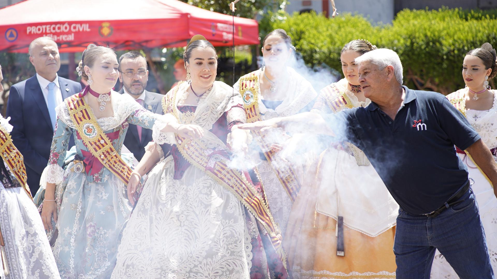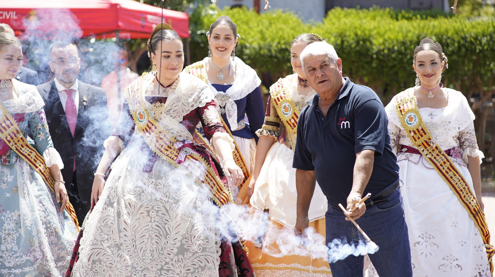 Després, la reina i la seva cort d’honor, junt amb l’alaclade, José Benlloch, s’han desplaçat a la mascletà.