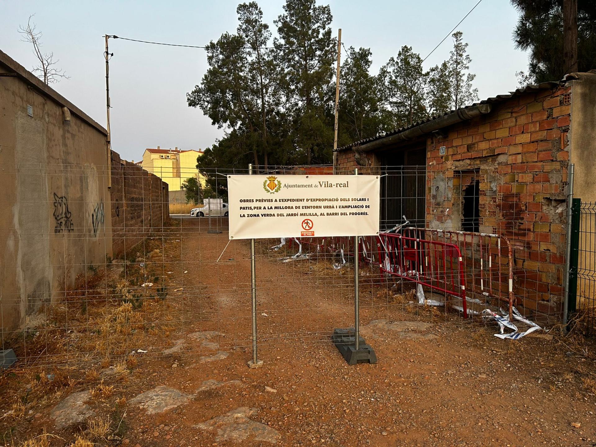 La Regidoria de Serveis Públics de Vila-real (SPV) ha procedit al tancament del pas a la zona en la qual es troben les construccions, la majoria en estat de ruïna, del carrer de Xèrica, al barri del Progrés. En un primer moment, s’ha instal·lat un clos provisional i la setmana vinent es col·locarà una placa metàl·lica de 2 metres d’alt i 3 d’ample, una estructura de bigues de ferro amb base de formigó per a “evitar la perillositat de l’entorn i els problemes d’insalubritat que genera”.