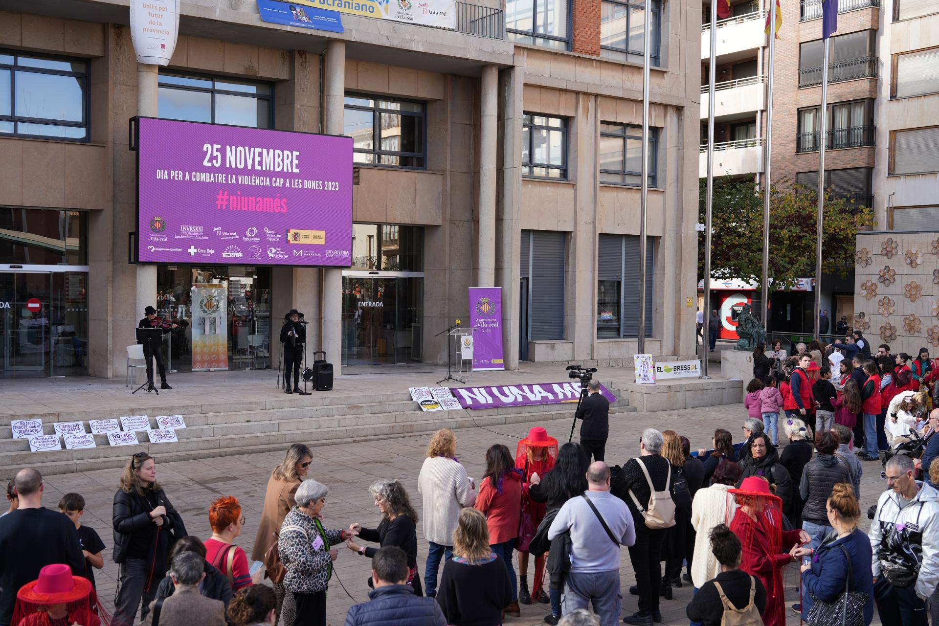 Vila-real alça la seua veu contra la violència masclista en els actes organitzats per la Regidoria d’Igualtat i les associacions vinculades amb la igualtat de gènere. Una performance i la lectura de manifestos -tant l’oficial, aprovat el divendres en el Ple, com els preparats per les diferents organitzacions de dones- han centrat les activitats del 25N amb un missatge clar: “Ni una més”.