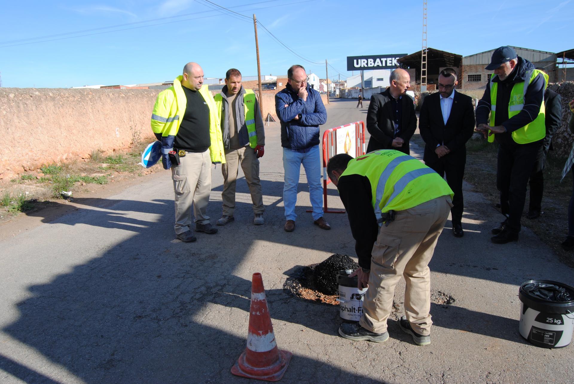 El Camí Carretera ha acollit aquest matí una demostració en viu amb un nou material de reparació de sots de menys d’un metre i que arribarà diferents camins rurals del terme municipal amb un nou component asfàltic que permet reparar qualsevol sot en qüestió de minuts, sense necessitat de tallar el trànsit al 100%, la qual cosa evita generar problemes circulatoris a l'entorn. L'alcalde, José Benlloch, i el regidor de Serveis Públics, Francisco Valverde, han comprovat les bondats d'aquest producte a càrrec dels treballadors de Serveis Públics.