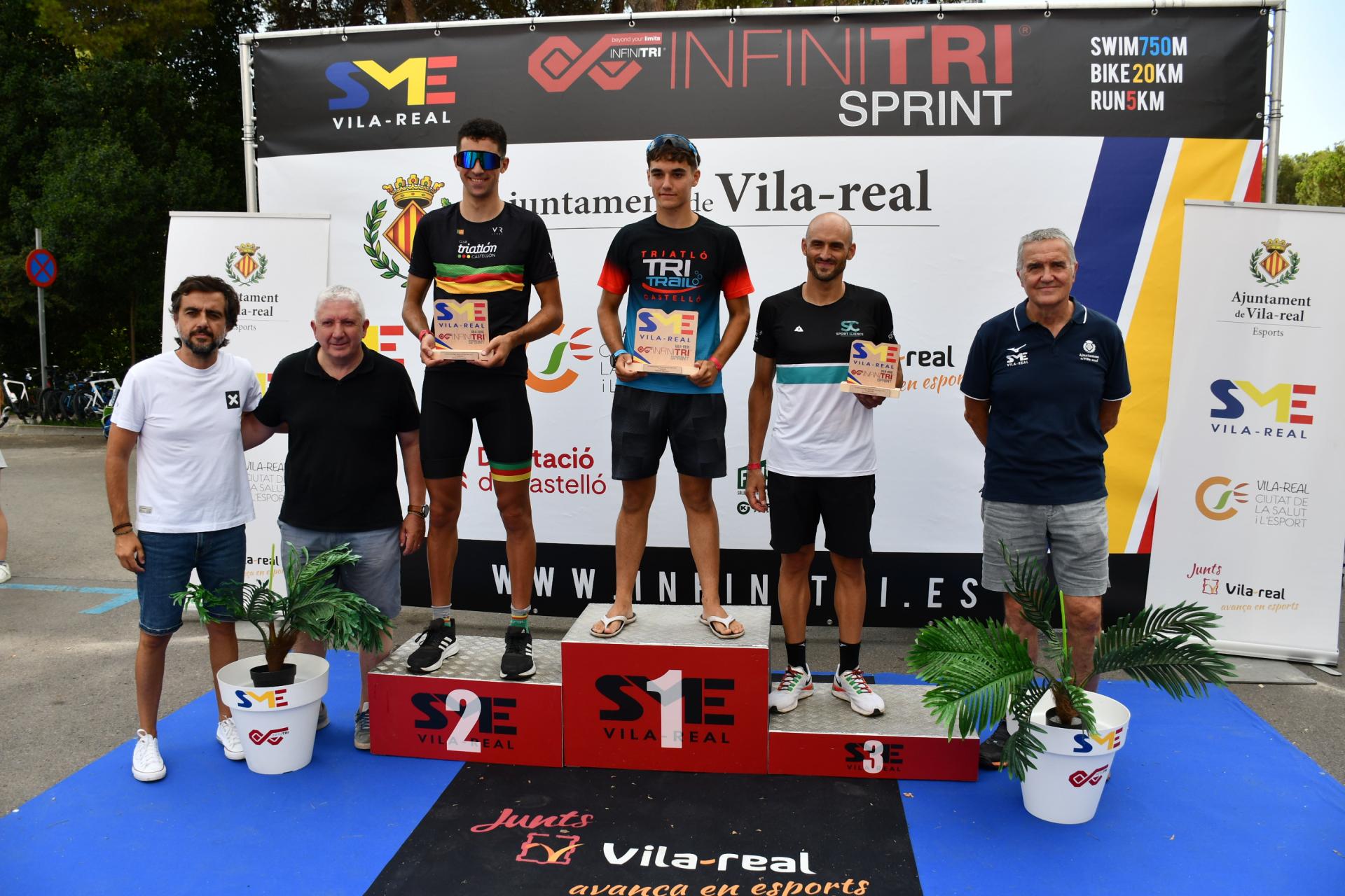 La ciutat de Vila-real va celebrar ahir el triatló Infiniti Sprint, una prova esportiva emblemàtica de la localitat que reuneix a grans atletes de la Comunitat i que destaca per comptar amb un escenari esportiu únic com és el paratge del Termet de la Mare de Déu de Gràcia i el riu Millars.