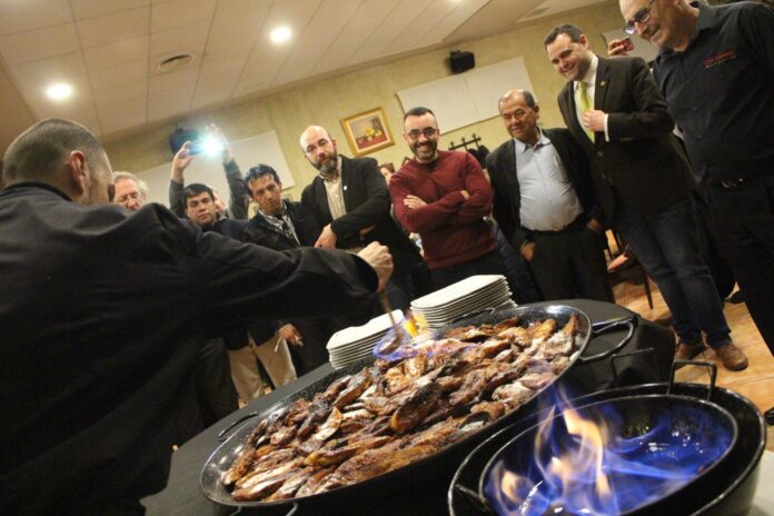 IMG_1640Al voltant d’un centenar de persones han degustat el menú, amb un preu de 25 euros, que ha començat, com és tradicional, amb fruita del temps com a entrant, acompanyada per torraeta d'albergínia, amb sardina fumada i espècies. Li han seguit escudella de carabassa amb bunyols d'aire i encenall de cecina, així com un milfulles de peix amb salsa d'ametlla i espècies, a més de carn freda del perol amb salsa de pera i castanya. Les postres han sigut una crema de codonyat amb mató, seguida de les tradicionals llesquetes d’ou, la infusió de timó i licor de taronja, tot açò acompanyat per vi de la terra, cervesa i aigua. El president de l’Associació Gastronòmica, Ximo Abril, afirma que “els plats seran molt cridaners, ja que estaran decorats d'una manera molt original, a proposta de les noves generacions de cuiners, que han ajudat a elaborar, un any més, un menú complet, variat i innovador sense perdre la tradició medieval, que és l'essència d'aquest àgape”.