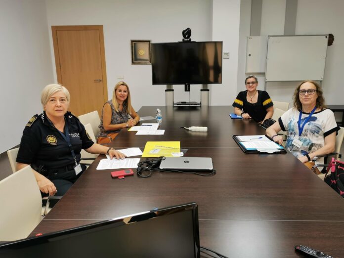 La regidora de Seguretat Ciutadana de l'Ajuntament de Vila-real, Silvia Gómez, al costat de la inspectora de la Policia Local, Rosana Gallardo, s'han reunit amb Soraya Porta i Ángela Malandrini, presidenta i secretària de l'associació Afym LGTBI+ per a afermar la col·laboració i atenció al col·lectiu.