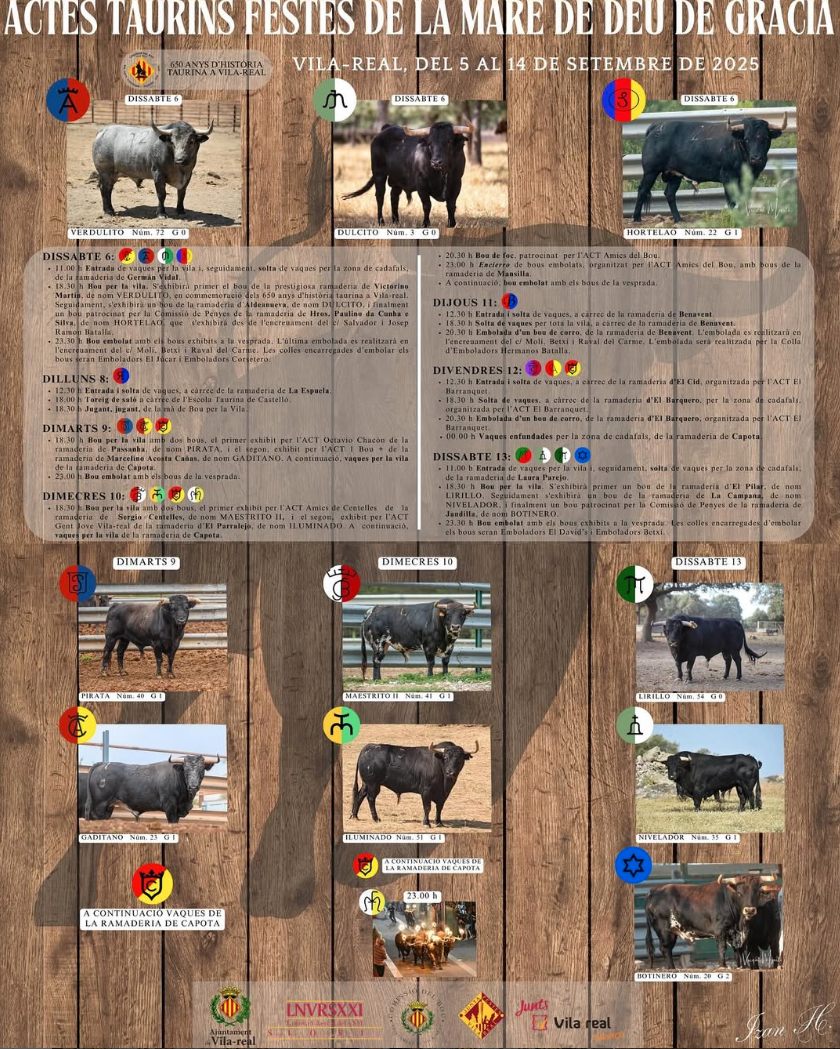 El cartell inclou totes les ramaderies participants, els horaris de cada acte i les associacions que fan possible la festa, garantint així un programa complet i detallat per a tots els aficionats. La ciutat ja es troba immersa en l’ambient festiu, amb els carrers que començen a respirar l’emoció d’una tradició que combina adrenalina i cultura popular.