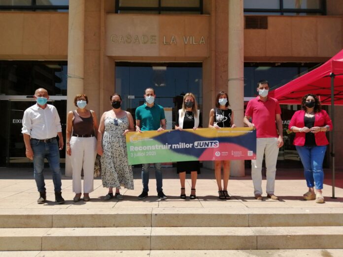 Regidors de la corporació, encapçalats per la primera tinenta d'alcalde, Silvia Gómez, han participat en l'acte de penjada de la pancarta, com a part de la campanya llançada per Concoval.
