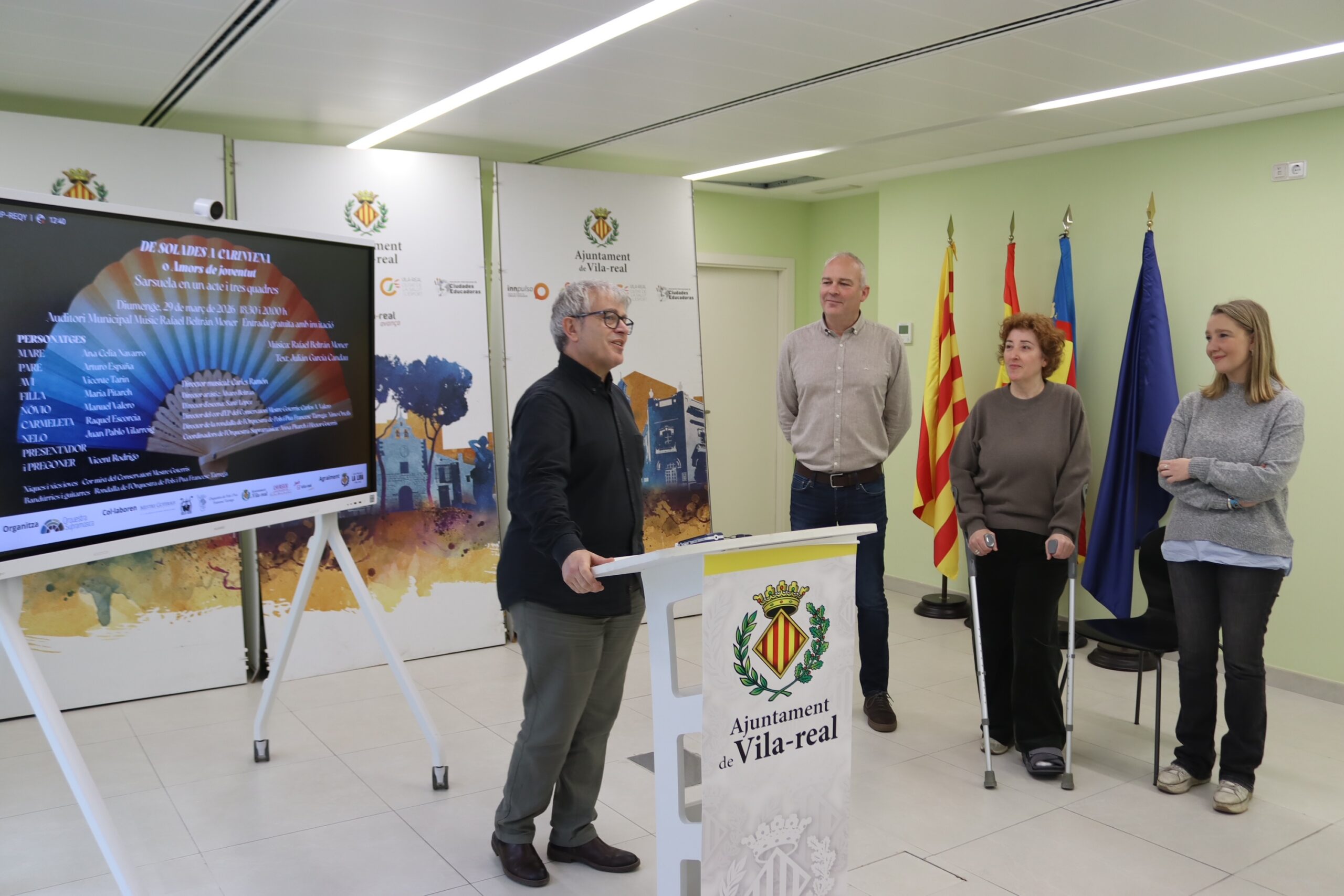 Vila-real acollirà el pròxim diumenge 29 de març l’estrena de la sarsuela 'De Solades a Carinyena o Amors de Joventut', una producció que reunirà més de 70 artistes i que es representarà a l’Auditori Municipal Músic Rafael Beltrán Moner en dues funcions, a les 18.30 i a les 20.00 hores. L’entrada serà gratuïta amb invitació fins a completar l’aforament.