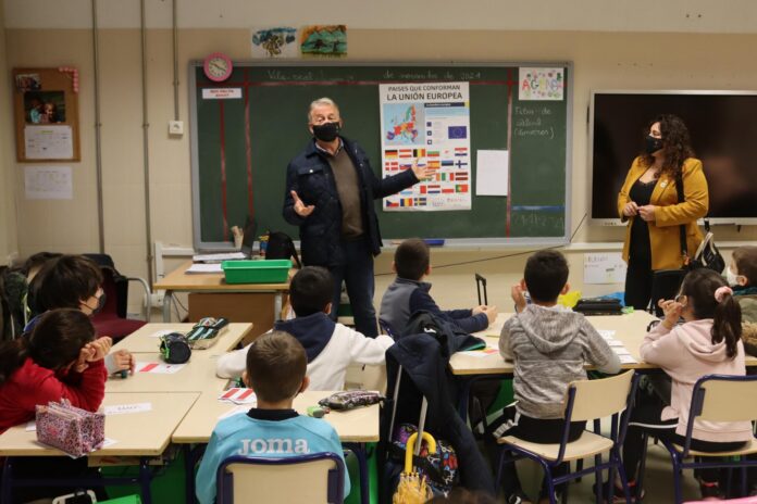 Els regidors han estat rebuts per la directora del centre, Pilar Vicent, i han pogut compartir una de les activitats divulgatives sobre la Unió Europea amb els alumnes de tercer de Primària.