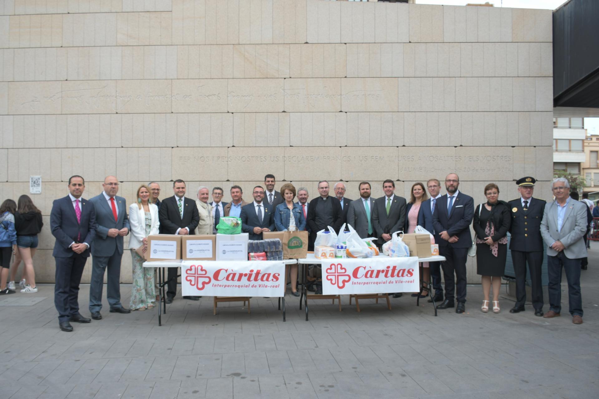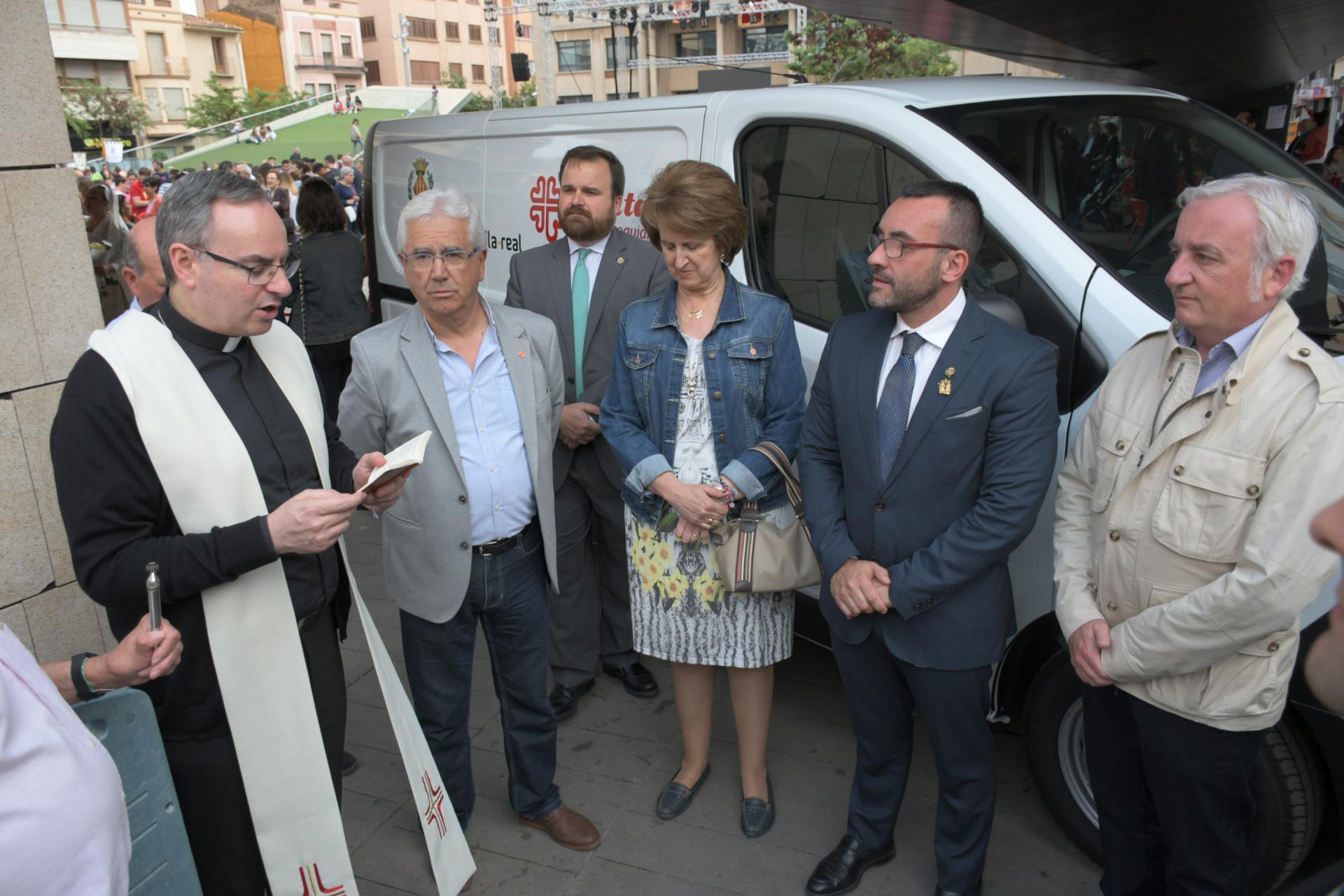Abans d’aquest important acte religiós dins de les festes patronals ha tingut lloc la campanya d’aliments solidaris que organitzen Càritas i la Junta de Festes amb la col·laboració de la Comissió de Penyes i la Caixa Rural. Al llarg de la vesprada s’han recollit aliments i donatius solidaris als porxes de la plaça de la Vila que s’han pogut traslladar al magatzem amb la nova furgoneta de Càritas, adquirida amb l’ajuda de l’Ajuntament. EL rector de Sant Jaume, mossén Javier Aparici, ha beneït la furgoneta