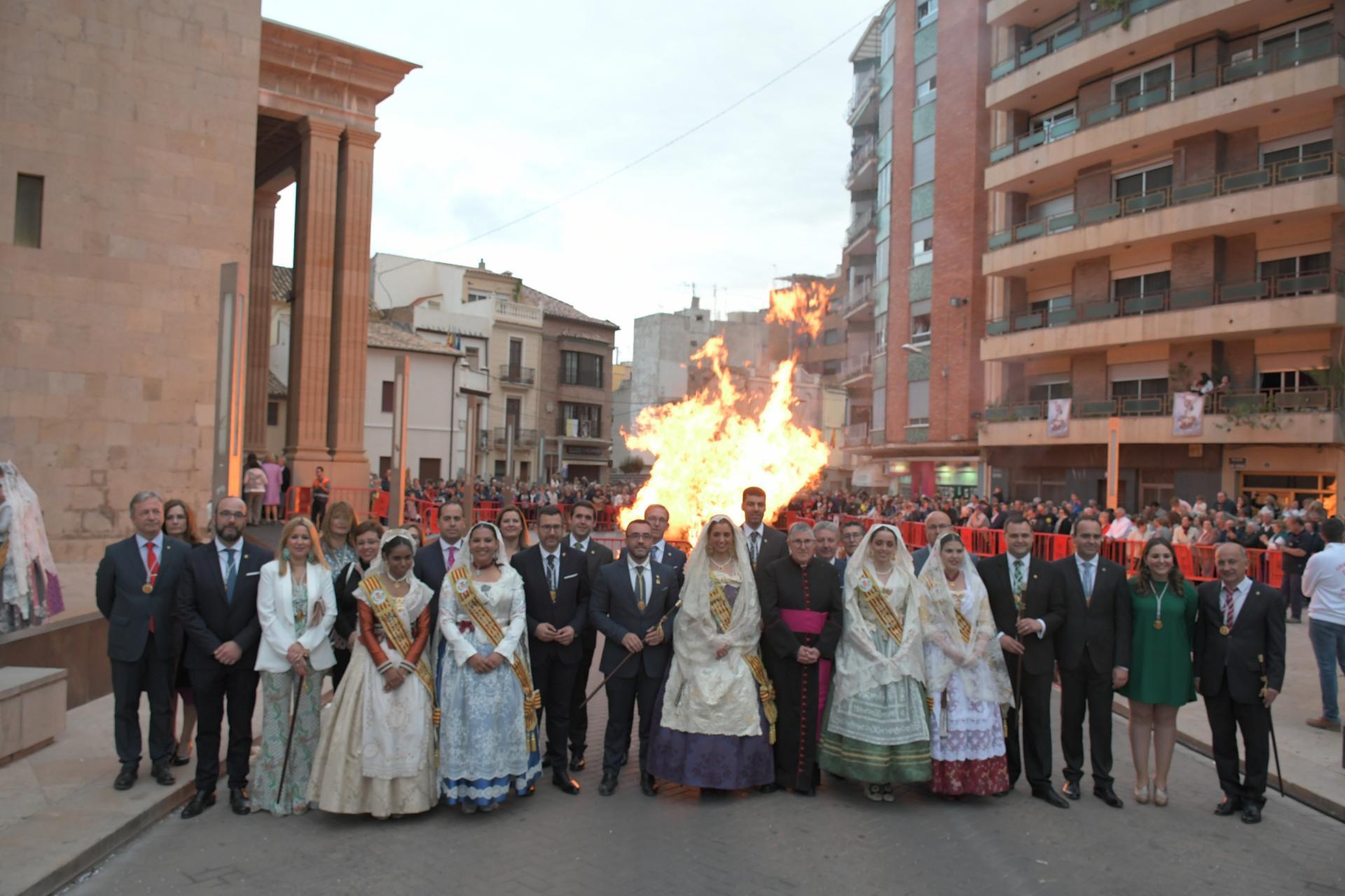 Una multitudinària ofrena de flors i la tradicional foguera de Sant Pasqual, que han encés l’alcalde de la ciutat, José Benlloch, i la reina de festes, Carmen Rubert, han anunciat a Vila-real l’arribada del dia gran de les festes patronals, el dia de Sant Pasqual, que serà demà.
