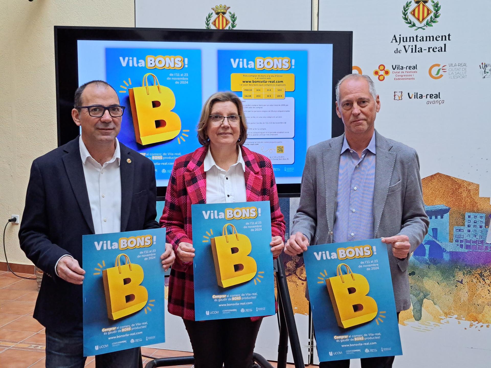 L’Ajuntament de Vila-real i la Unió de Comerç de Vila-real (Ucovi) han posat en marxa la iniciativa ‘Vila BONS’, una campanya que permetrà als residents majors de 18 anys adquirir bons de compra de 20, 50 o 100 euros, dels quals pagaran només la meitat gràcies a la subvenció municipal. Amb un pressupost de 63.000 euros, la campanya s’afegeix als esforços per promoure l’associacionisme comercial i dinamitzar les àrees comercials de la ciutat, oferint als veïns l’oportunitat de contribuir a la recuperació econòmica local i obtenir estalvis en les seues compres.