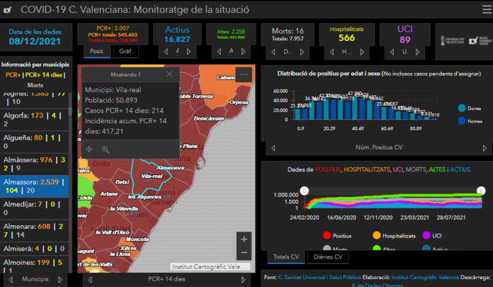 Vila-real continua augmentat una setmana més i obté 417, 21 punts d'incidència, el que significa que segueix en risc extrem. A més, els contagis actius augmenten i ja són 214 casos de Covid-19 a la ciutat. Una data que preocupa de cara a Nadal.