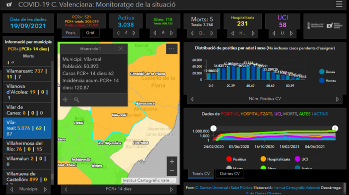 Vila-real augmenta lleument la seua incidència. Dels quasi 50 punts que va rebaixar la ciutat en l'última actualització, el municipi ha recuperat 13, 64 punts. Una incidència que puja després de la setmana de festes que comença a fer efecte en el municipi, tal com ocorre en el cas de Borriana. Pel que fa als casos actius passa de 55 a 62, amb un lleuger augment.