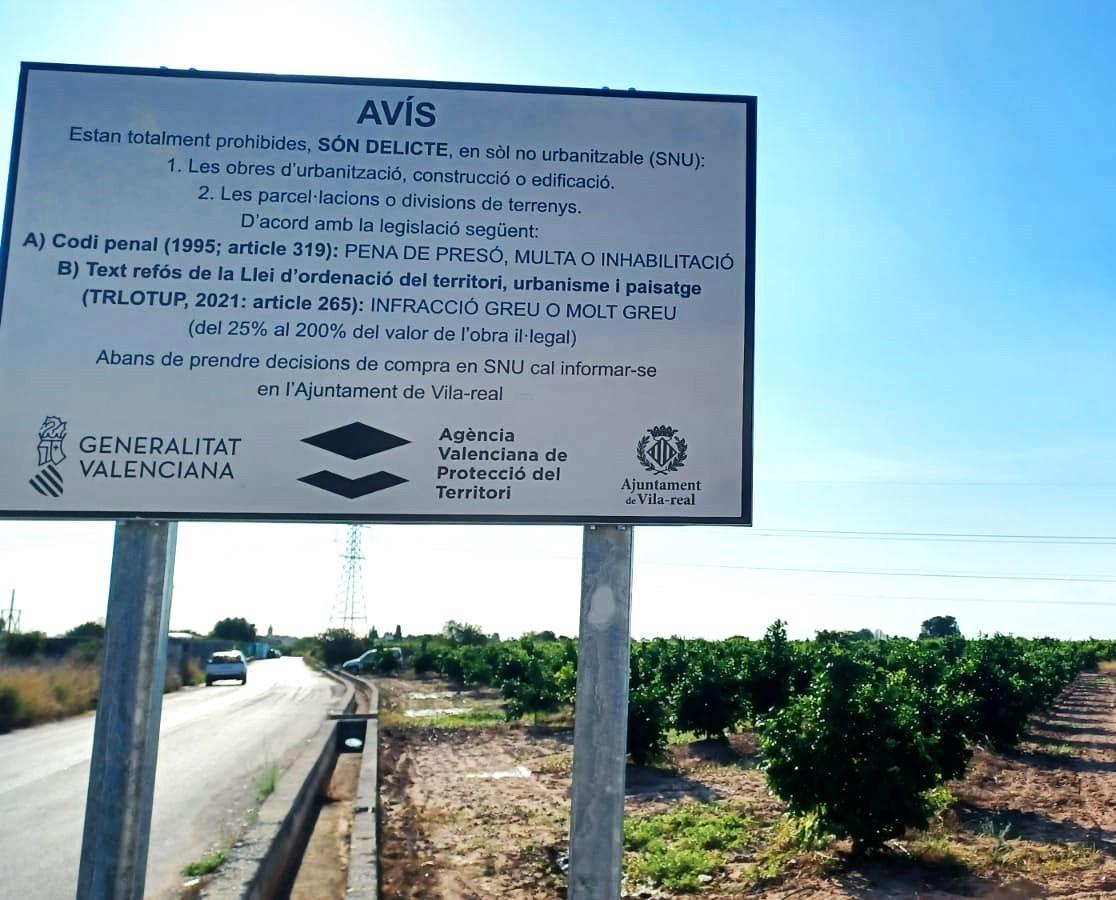 L'Ajuntament de Vila-real, en el seu compromís pel compliment de la legislació en matèria urbanística i la protecció dels espais en els quals no està permesa la construcció, i atenent a les indicacions de l’Agència Valenciana de Protecció del Territori, ha reforçat la informació a la ciutadania per a advertir de les conseqüències judicials que suposa la construcció en sòl no urbanitzable.