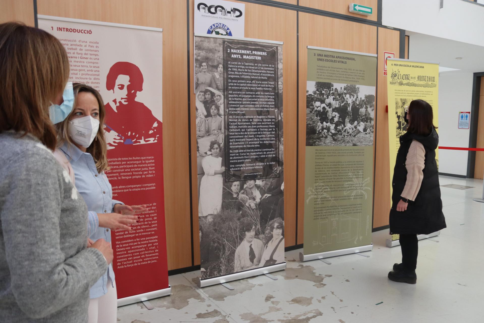 Aprofitant la 18a Nit d’Escola Valenciana s'hi ha organitzat l’exposició 'Empar Navarro i Giner. Arrels de l’escola valenciana', cedida per Escola Valenciana, que podreu visitar a l’Espai Jove de Vila-real del 10 al 30 de novembre de 2021, de 9 a 14 i de 17 a 21 hores.