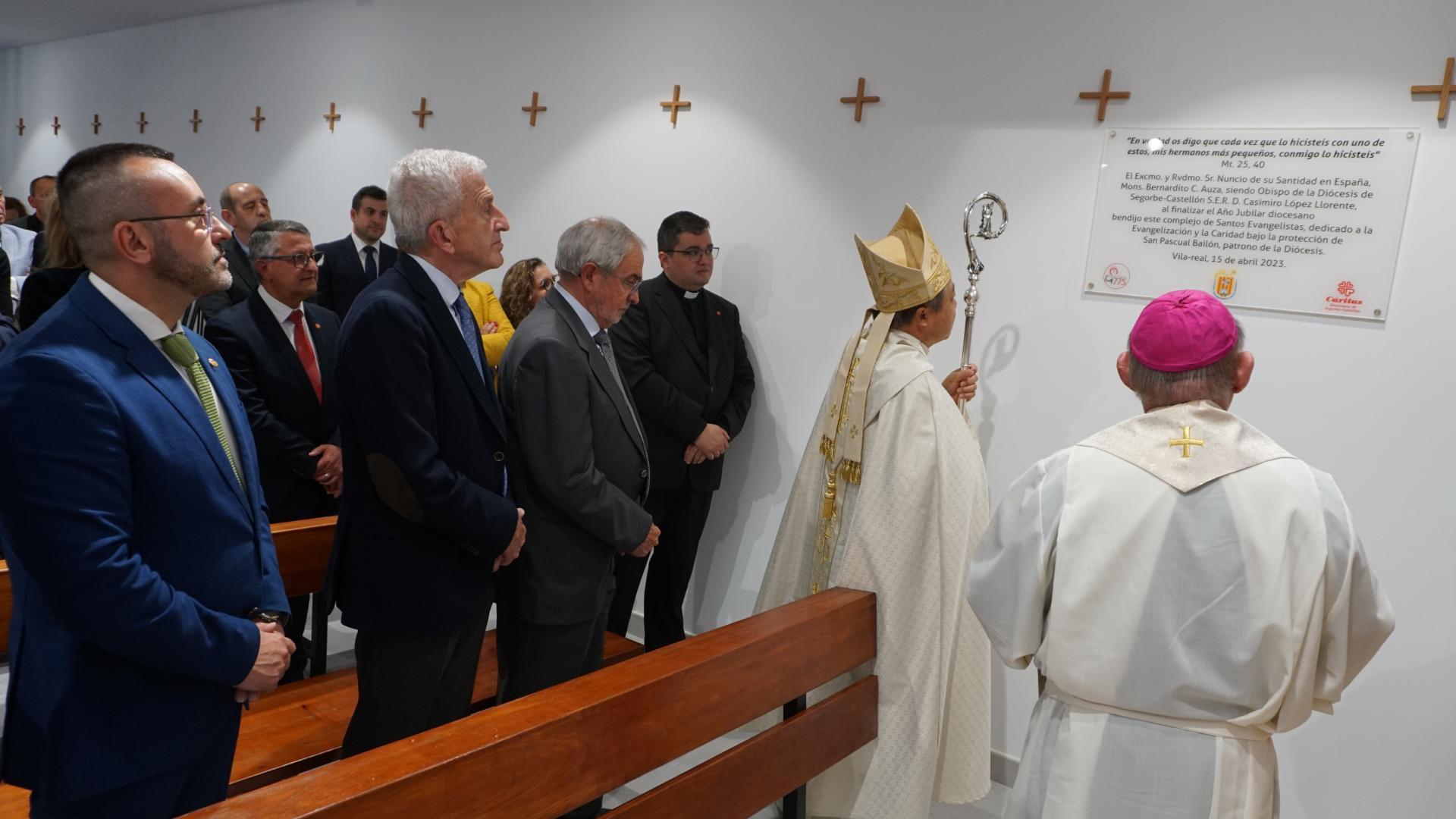 El bisbe de la Diòcesi de Sogorb-Castelló, Casimiro López Llorente, i el president de Càritas Espanyola, Manuel Bretón, també van assistir al costat de l'alcalde de la ciutat, José Benlloch, i representants de la corporació municipal, en l'obertura de les noves instal·lacions que, a més del centre d'acollida, alberguen una nova seu parroquial i una capella. Un projecte en el qual l'Ajuntament de Vila-real ha col·laborat amb una aportació de 300.000 euros per a la seua construcció, a més d'altres 10.000 euros per a l'equipament. Així mateix, l'aportació municipal al programa d'atenció a transeünts s'ha incrementat fins als 100.000 euros amb la finalitat de col·laborar en la posada en marxa d'aquest espai dedicat a la inclusió.