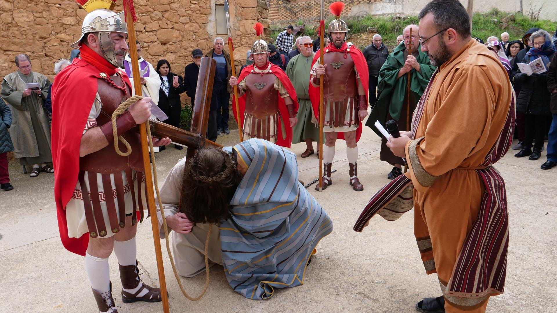 En el viacrucis, els membres de la confraria de la Sang, amb l'alcalde al capdavant, han escenificat diferents moments de la passió, mort i resurrecció de Jesús