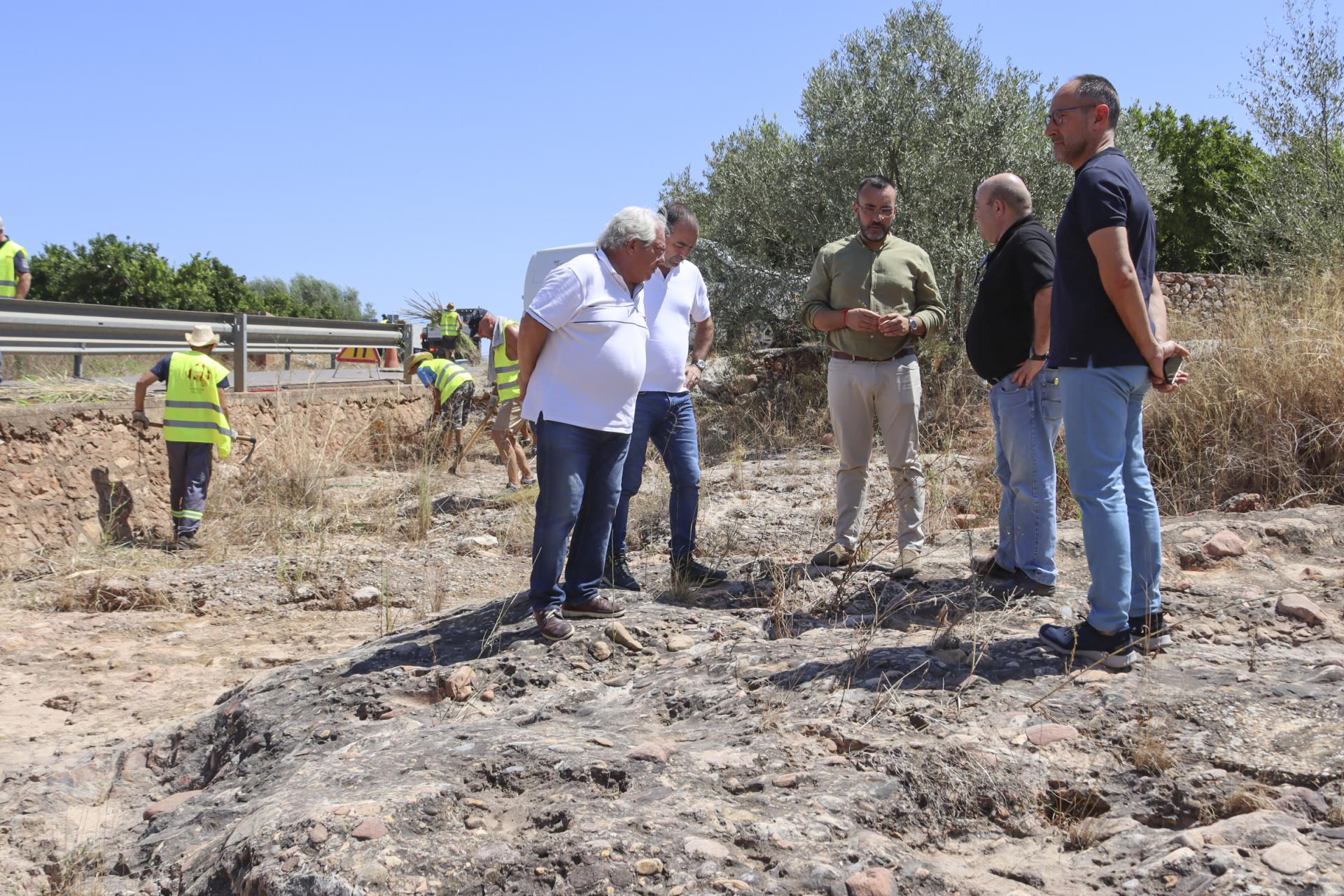 El primer edil i el responsable d’SPV s'han desplaçat fins al barranc de Ràtils, al seu encreuament amb el camí Betxí, acompanyats per tècnics i personal del departament. Durant la visita, han pogut avaluar l'avanç dels treballs, que es desenvolupen en altres punts del terme com el barranc de Roig, en els encreuaments amb camins com Molí Llop, Bellot, Artana o les Voltes. “L'Ajuntament, en la mesura de les nostres possibilitats, no deixem d'actuar en el manteniment del nostre terme, neteja d'embornals i altres actuacions que ens permeten estar millor preparats per a quan arriben els episodis de pluges. Però no podem oblidar que la competència en la neteja de canyar i en mantindre expedits els llits d'aigua és del Govern central, a través de la Confederació Hidrogràfica del Xúquer”, recorda Benlloch, qui ha reiterat a la CHJ la seua exigència per a millorar el manteniment de llits i barrancs del terme municipal.