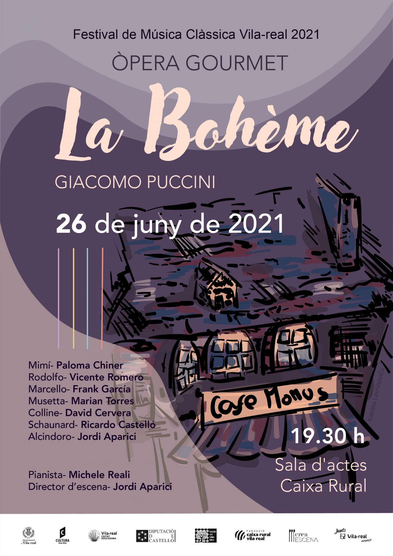La programació compta amb una conferència sobre Giacomo Puccini a càrrec de Pol Avinyó, historiador musical del Gran Teatre del Liceu de Barcelona, aquest pròxim dissabte 19 de juny, a les 19.00 hores en el Teatre Tagoba. El dissabte 26 de juny serà el torn de l’òpera gurmet, amb La Bohème, de Puccini, a les 19.30 hores, en la sala d’actes de la Fundació Caixa Rural Vila-real. Tots dos esdeveniments són amb entrada lliure fins a completar aforament.