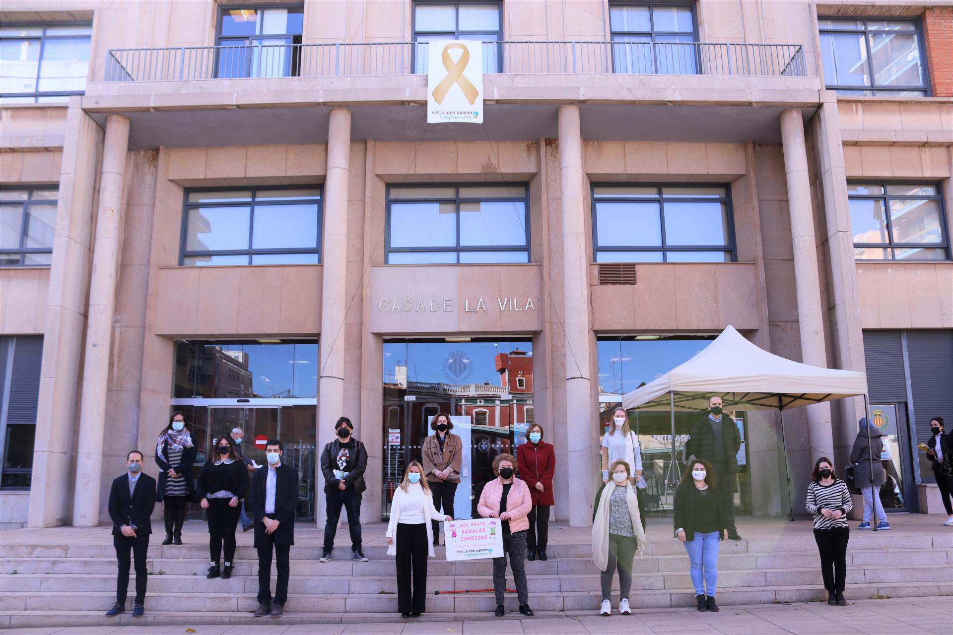 La corporació municipal, encapçalada per la primera tinent d'alcalde i regidora de Sanitat, Silvia Gómez, ha acompanyat a les entitats Aspanion i Pintando el Camino en Rosa en l'acte simbòlic de penjada de la pancarta que, amb el llaç daurat, reinvidica una major atenció i conscienciació sobre el càncer infantil. La pancarta, que penja des de la balconada de l’Ajuntament, commemora el Dia Internacional del Xiquet amb Càncer.