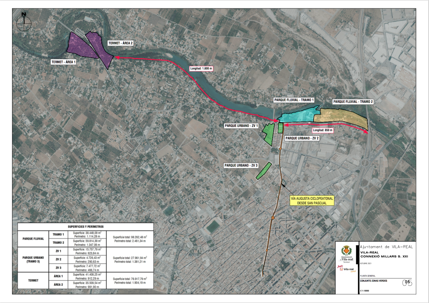 En suma, ‘Connexió Millars Vila-real segle XXI’suposarà la creació una àrea verda a l’entorn del Millars de 126.224 metres quadrats, de manera que, quan es complete el projecte, la ciutat triplicarà l’actual superfície del Termet (76.917 metres quadrats). Obiol ha remarcat que l’equip de govern té intenció de sotmetre aquesta proposta urbanística al debat públic i a la participació de la ciutadania perquè “entre tots i totes, puguem fer possible aquest gran projecte que sens dubte marcarà un abans i un després en la connexió entre la ciutat i el riu Millars”.
