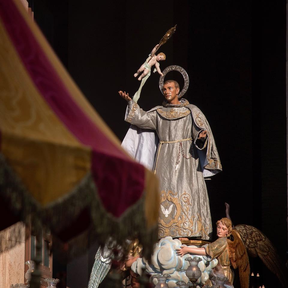 Confraries, entitats, congregacions, bandes de música i els xiquets i xiquetes que aquest any han pres la comunió han precedit a la figura del sant en la Processó i en la rereguarda la corporació municipal i la reina i les dames, que han tingut la sort de ser representants festeres en aquest any especial i inoblidable.