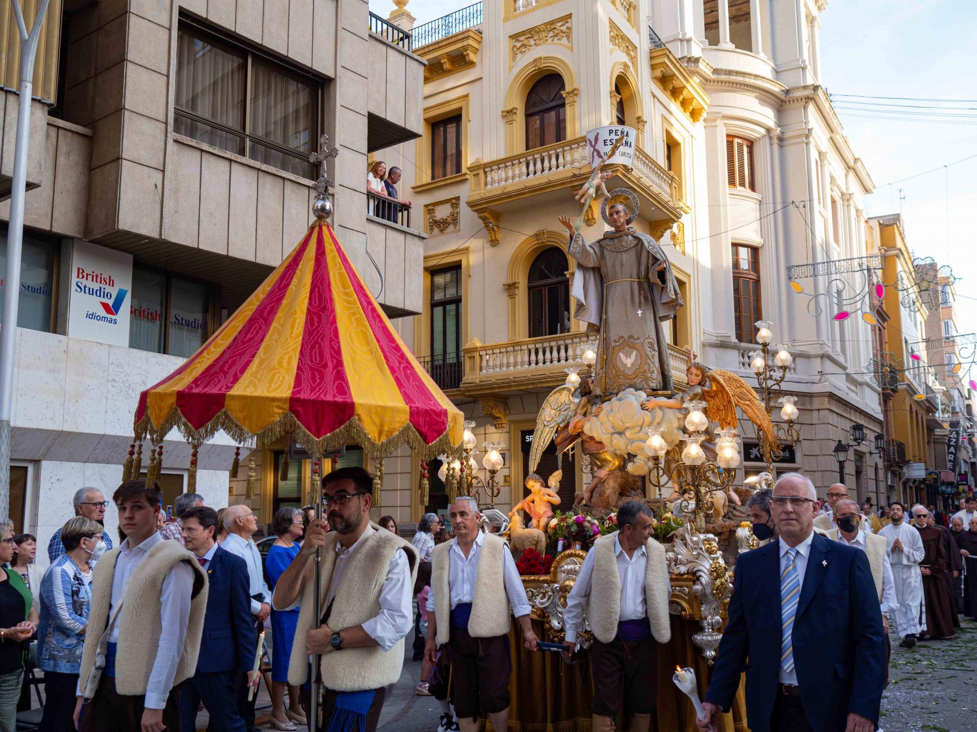 La processó en honor al patró ha pres a la vesprada el relleu dels actes religiosos dedicats a retre homenatge i devoció al patró, que ha eixit des de la plaça de Sant Pasqual a les 18:30 hores. Aquest matí a les 11:00 hores ha sigut la Santa missa pontifical a la basílica de Sant Pasqual, presidida per l’Excel·lentíssim i Reverendíssim Sr. Casimiro López Llorente.