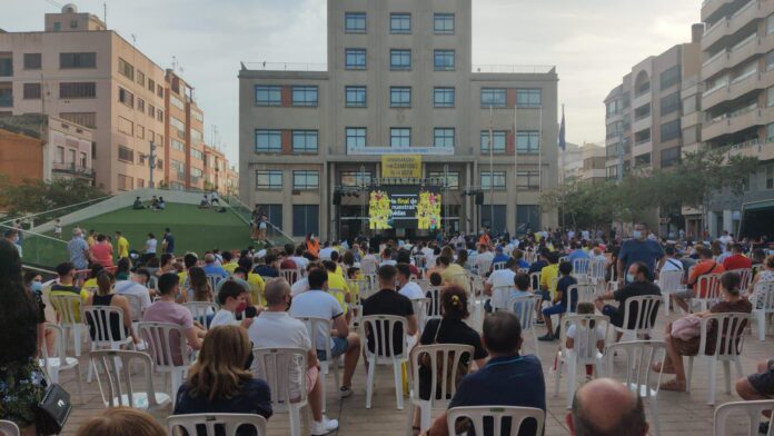 L'afició grogueta plena la Plaça Major per l'estrena del documental del Villarreal CF